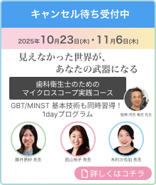 【11/6空席あり・10/23キャンセル待ち受付中】武山裕子先生・藤井更紗先生・木村沙也加先生「歯科衛生士のためのマイクロスコープ実践コース」開催のお知らせ